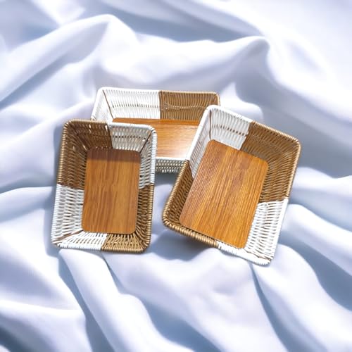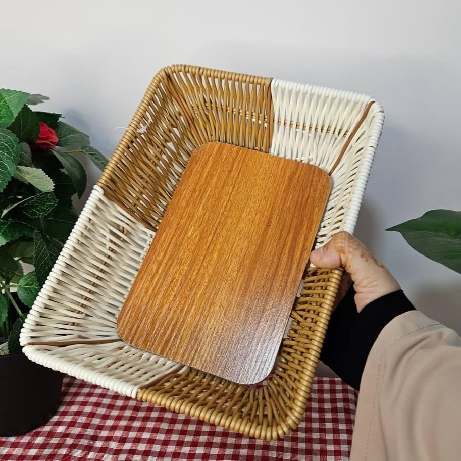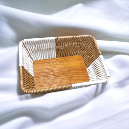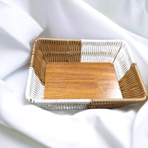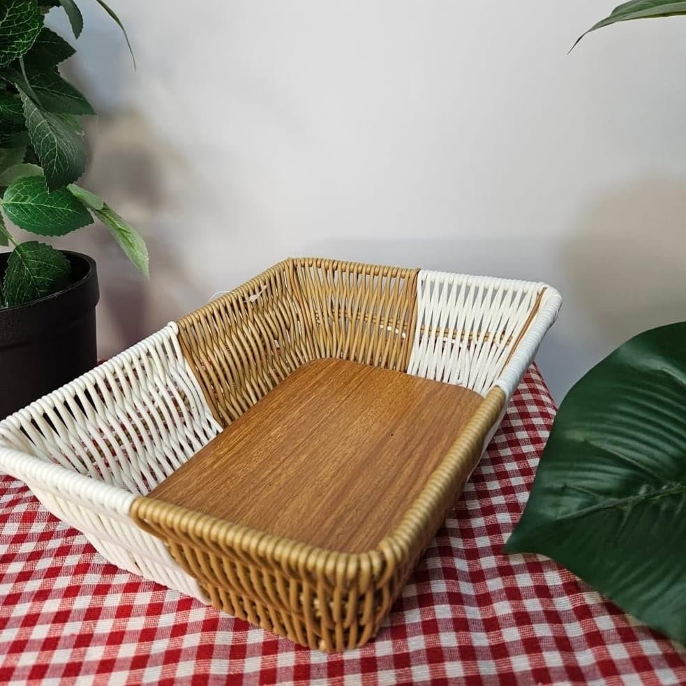 Generic - سلة فواكهة وخبز راتان صناعة يدوية مستطيلة (28*22*8سم)