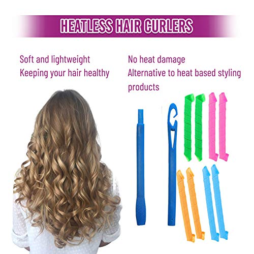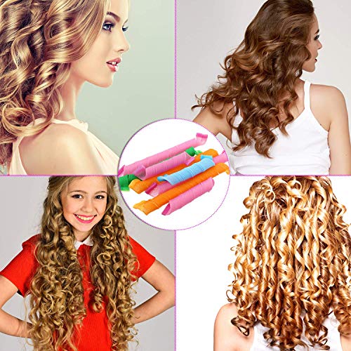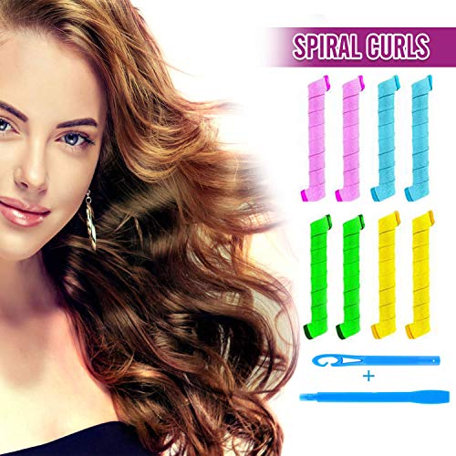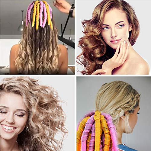 LSYBEAUTY - بكر شعر لتجعيد الشعر بدون حرارة، 28 بكرة شعر سحرية حلزونية لعمل تصفيفة الشعر الكيرلي والمموج مع 2 خطاف تسريح للشعر الطويل ولعمل معظم انواع تسريحات الشعر (30 سم)