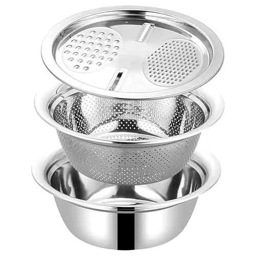 AREXOL - طقم مبشرة وحلة وعجان ومصفاة استانلس ستيل متعددة الاستخدام ست وظائف مقاس 28 سم للمطبخ لتحضير وتقطيع وخلط وتصفيه عملي وسهل الاستخدام اليومي