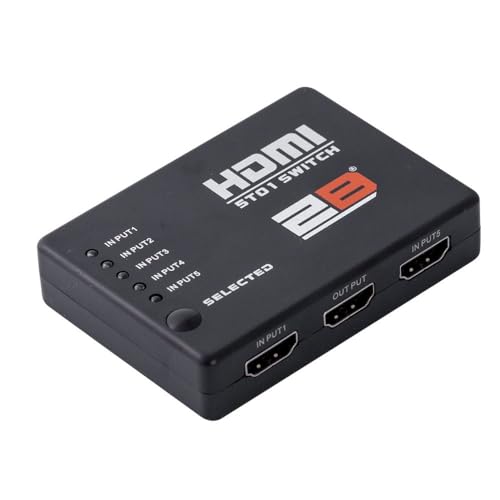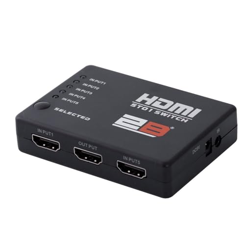 2B - محول تبديل 5 إلى 1 بمنفذ HDMI من 2 بي مزود بريموت كنترول، بلون أسود
