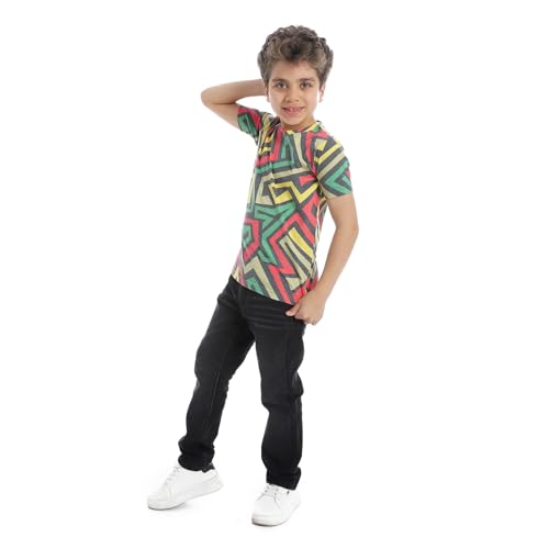 2B Stylish - تيشرت قطن نصف كم برقبة دائرية مطبوع للاولاد من تو بي ستايلش - اسود واصفر