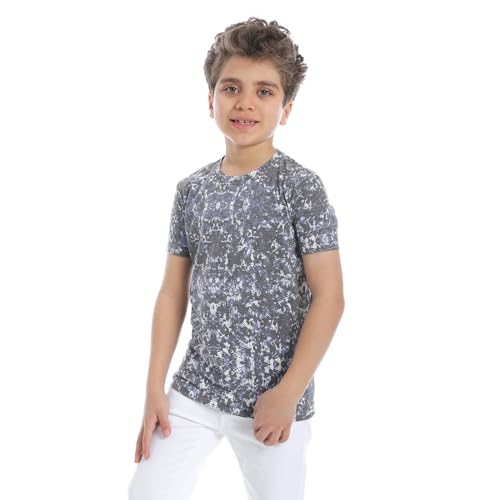 2B Stylish - تيشرت قطن نصف كم برقبة دائرية مطبوع للاولاد من تو بي ستايلش - ازرق واسود
