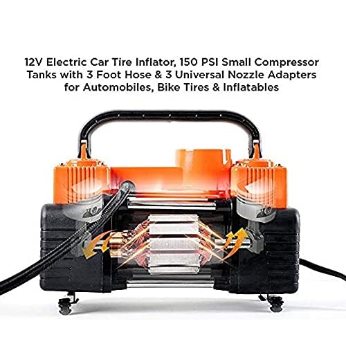 Generic - بلاور هواء 2 سلندر لنفخ اطارات السيارات والدراجات والكرات والاطواق العائمة، يعمل عن طريق توصيله ببطارية او ولاعة السيارة/ موديل VX01