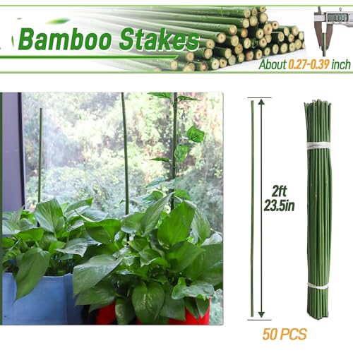 Mulctun - عصي خيزران 2 قدم للنباتات الداخلية والخارجية، اعمدة خيزران طبيعية 0.26-0.4 انش، اوتاد حديقة متينة للطماطم والفاصوليا والزهور والنباتات المحفوظة في اصيص
