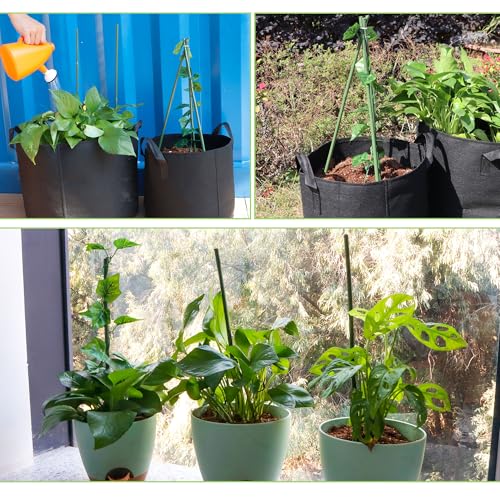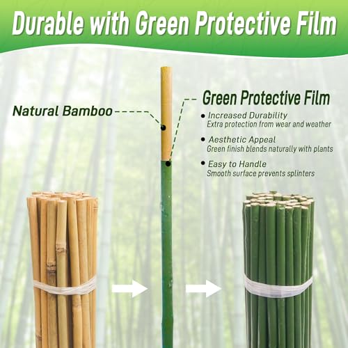 - صديقة للبيئة ومتينة: مصنوعة من أوتاد نباتات الخيزران الطبيعي عالية الجودة مع طبقة واقية بلاستيكية خضراء، أوتاد متينة ومقاومة للطقس. تم تبخيره للاستخدام طويل الأمد، يضيف الغشاء الأخضر حماية إضافية ضد التآكل مما يضمن استمراره لعدة مواسم.