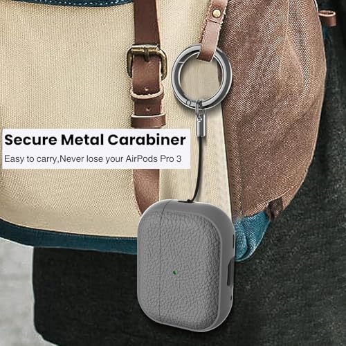 Betcolyn - [2 في 1] جراب حماية لسماعات ابل ايربودز برو 3 من بيتكلين، غطاء حماية ناعم من جلد البولي يوريثين الحراري مع سلسلة مفاتيح للنساء والرجال مضاد للصدمات - (رمادي)