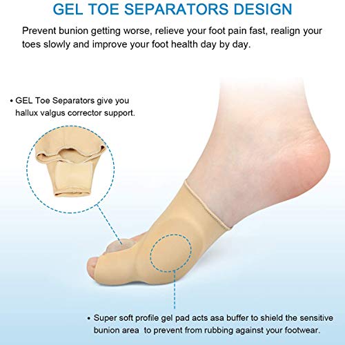 - ★★★ تصميم فاصل أصابع القدم: بالمقارنة مع أكمام القدم البسيطة، فإن غلاف مصحح ورم الإبهام الخاص بنا يحتوي على وسادات جل كبيرة لفصل الإبهام وأصابع القدم. أعد ضبط مفاصل أصابع القدم وساعد على فرد أصابع القدم الملتوية بلطف. مع ضغطة من السيليكون الناعم، تساعد أداة تمليس أصابع القدم على فرد وتصحيح إصبع القدم يومًا بعد يوم. يخفف الألم بشكل فعال كل يوم.
