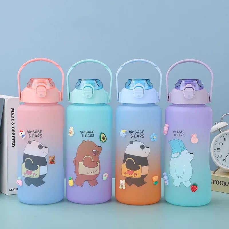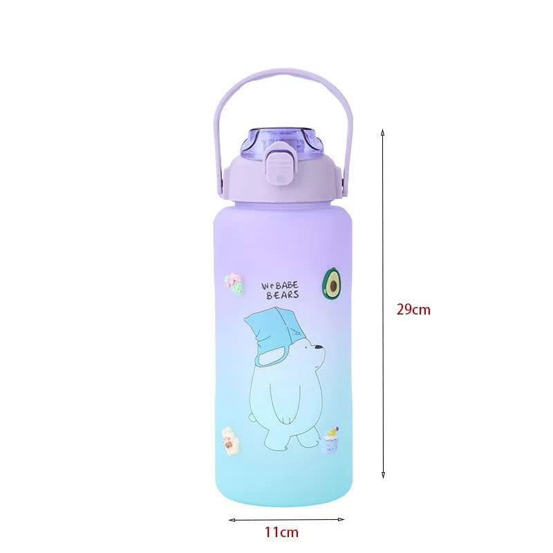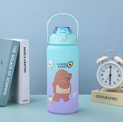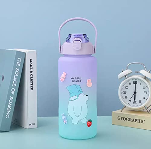 Spaceshoop - زجاجة مياه رياضية كريستالية من الزجاج، تتميز بسعة كبيرة وتصميم كرتوني متدرج وتذكيرات للوقت لتدريبات اللياقة البدنية والانشطة الخارجية - 2 لتر، متعددة الالوان