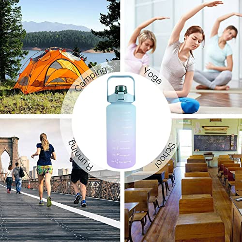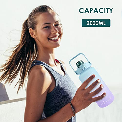 Spaceshoop - زجاجة مياه رياضية تحفيزية 2 لتر خالية من البيسفينول ا مع مؤشر لتتبع الوقت والسعة يوميا وضمان شرب كمية كافية المياه في صالة الالعاب الرياضية واللياقة البدنية (لون اخضر)