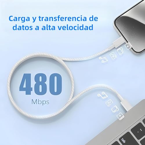 Generic - كابل شحن سريع USB-C بطول 2 متر بقدرة 60 واط / 120 واط، مصنوع من النايلون المضفر، متين ويدعم الشحن السريع لأجهزة اللابتوب والأجهزة الذكية من الفئة i