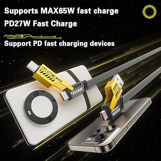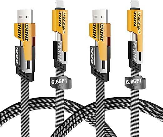 Generic - كابل شحن سريع USB متعدد الوظائف 4 في 1 بطول 2 متر مع USB A/USB C إلى USB C/IP لنقل البيانات متوافق مع آيفون/أندرويد/باد/والأجهزة الأخرى، بي ضمان 6اشهور 👌