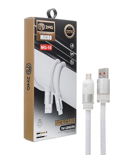 2MG - كيبل بيانات مايكرو USB MG-10 من 2 ام جي، شحن عالي السرعة 120 واط، ابيض مضفر، طول 1 متر