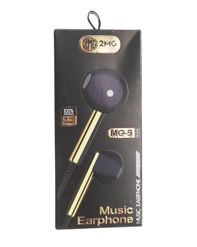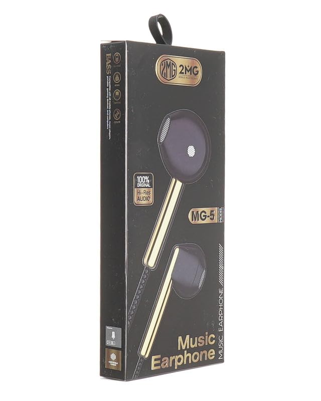 2MG - سماعات اذن سلكية MG-5 بمقبس 3.5 ملم من 2 ام جي، تصميم داخل الاذن مع ميكروفون وكابل ريموت بطول 130 سم، اسود