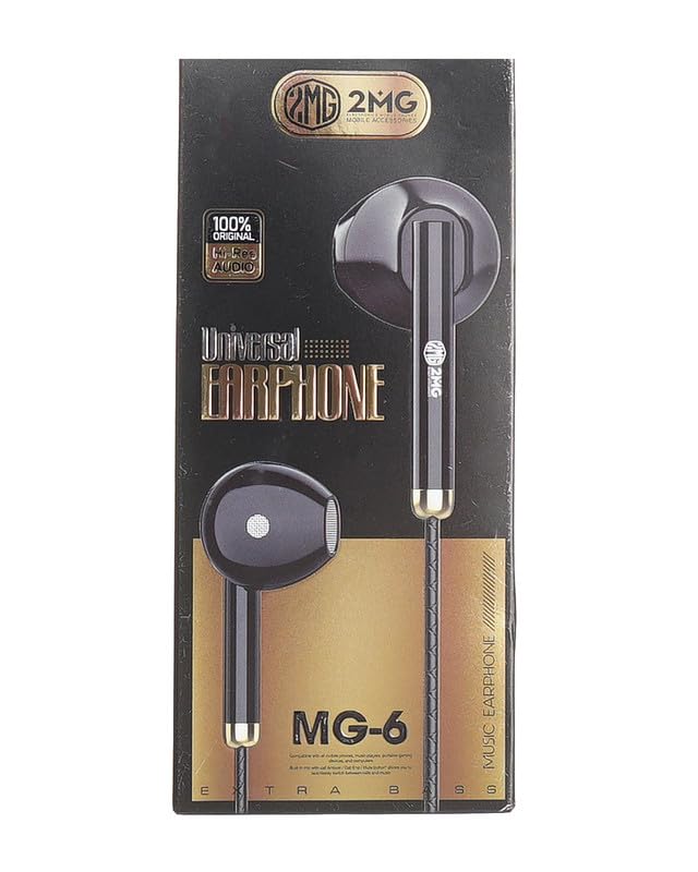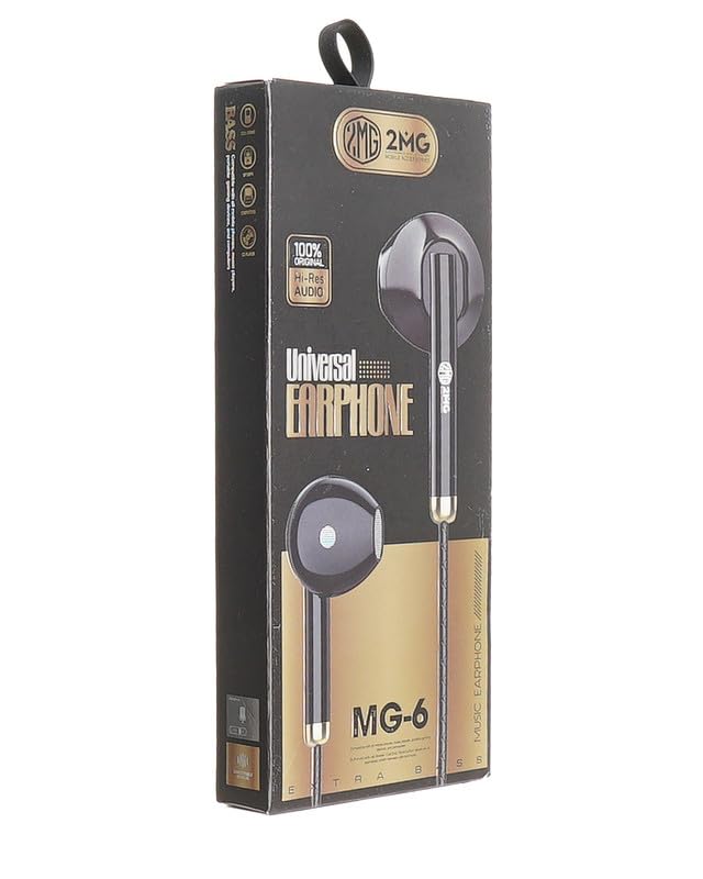 2MG - سماعات اذن سلكية MG-6 بمقبس 3.5 ملم من 2 ام جي، تصميم داخل الاذن مع ميكروفون وكابل ريموت بطول 130 سم، اسود