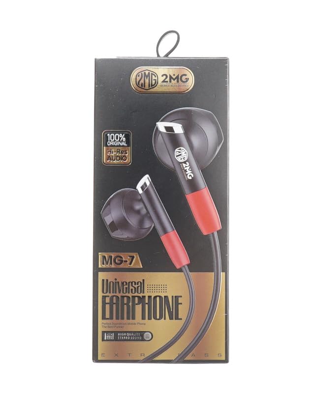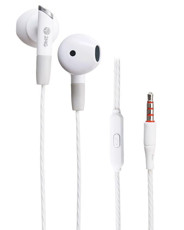 2MG - سماعات أذن بسلك MG-7 بمقبس 3.5 ملم من 2MG، تصميم داخل الأذن مع ميكروفون وتحكم عن بعد بطول كابل 1.30 متر، لون أبيض