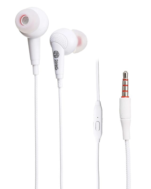 2MG - سماعات أذن بسلك MG-9 بمقبس 3.5 ملم من 2 ام جي، تصميم داخل الأذن مع ميكروفون وتحكم عن بعد بطول كابل 130 سم، أبيض