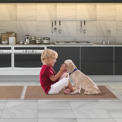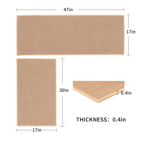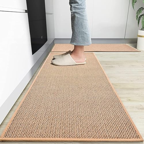 AOHRYME - مجموعة سجادات مطبخ قابلة للغسل ومضادة للانزلاق من المطاط الطبيعي لأرضية الحوض والرواق وغرفة الغسيل من قطعتين 44 سم × 1.20 م + 44 سم × 75 سم (بيج)