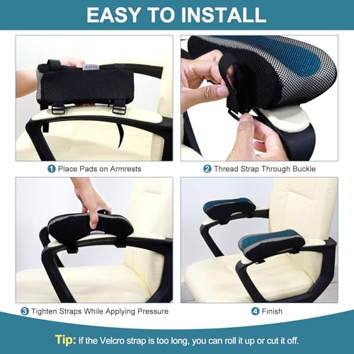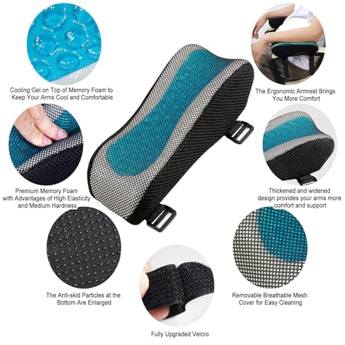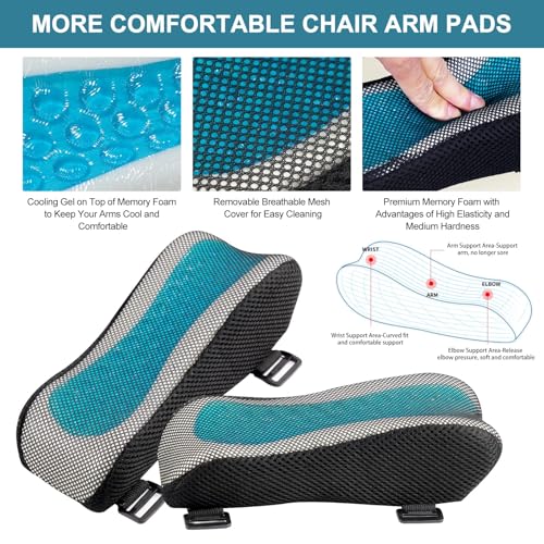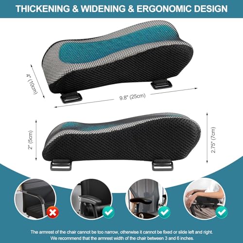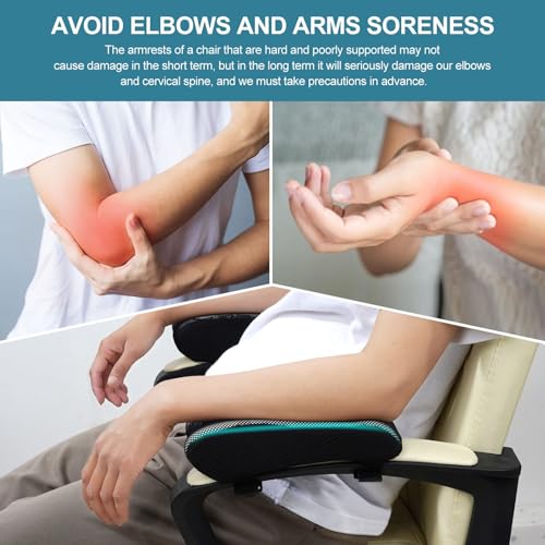 KOWVOWZ - وسائد ذراع لكرسي المكتب، وسائد مسند ذراع سميكة للكرسي، وسادة دعم الكوع مريحة مضادة للانزلاق من الميموري فوم، أغطية مسند الذراع لكرسي الألعاب، قطعتان (أسود)