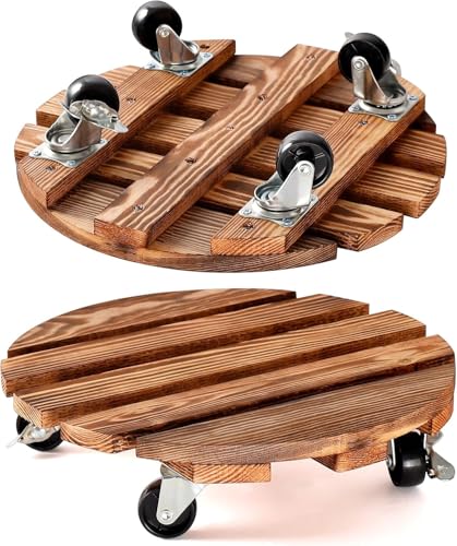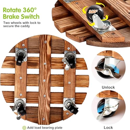 Generic - حامل نباتات خشبي بعجلات مقاس 12 انش - 30 سم مع عجلات معدنية قابلة للقفل من قطعتين، حامل نباتات دوار شديد التحمل