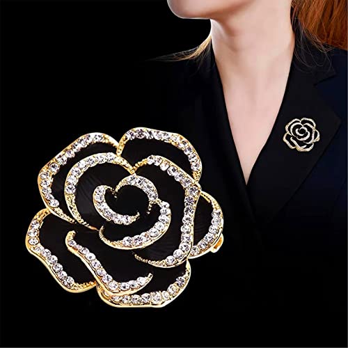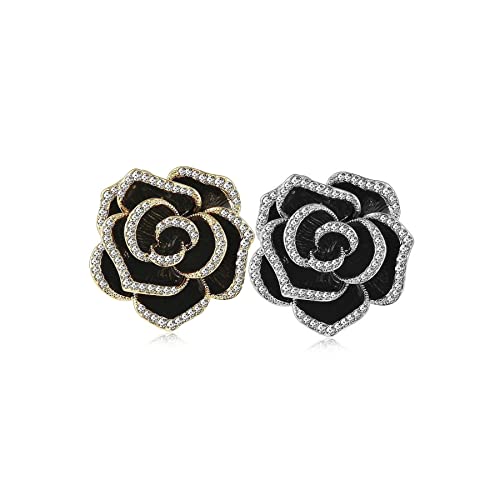Kriccio - دبوس بروش على شكل زهرة بتصميم بتلات انيق ورائع من حجر الراين للنساء لحفلات الزفاف والولائم والحفلات - قطعتين
