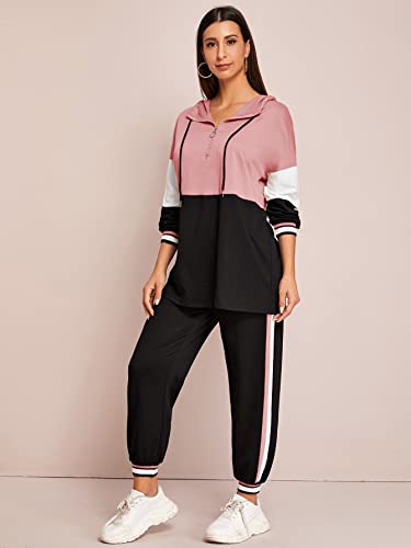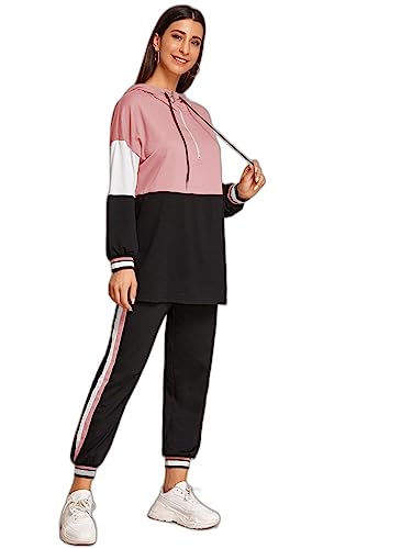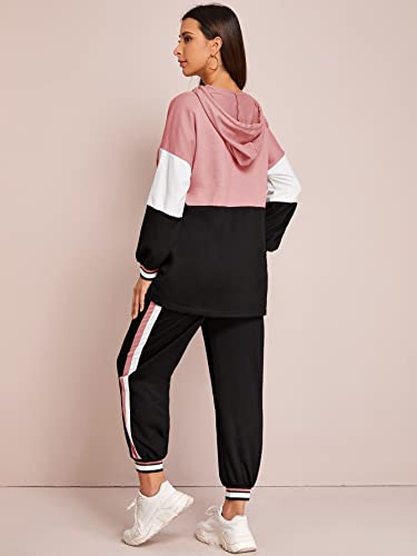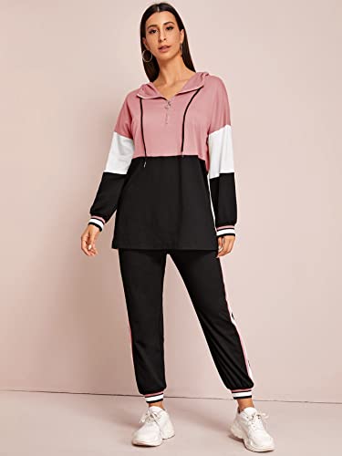 SHEIN - طقم ملابس نسائية مكون من قطعتين من مولفاري بالوان متعددة ونصف سحاب وسويت شيرت بغطاء للرأس ورباط