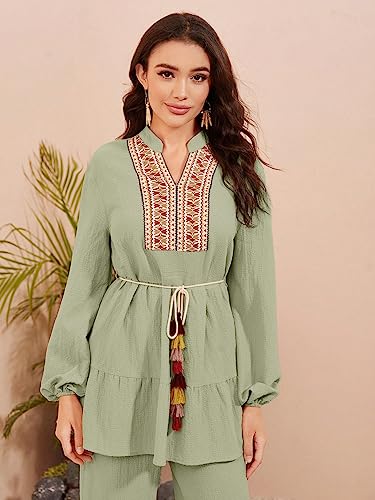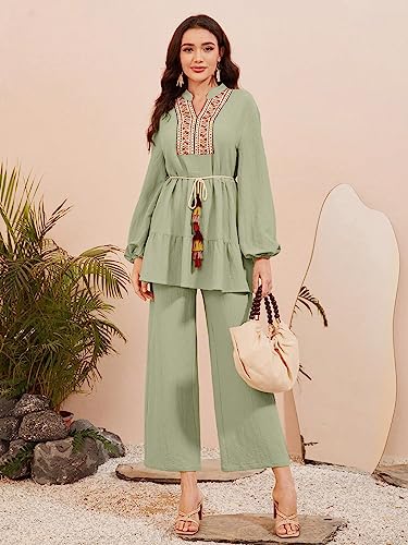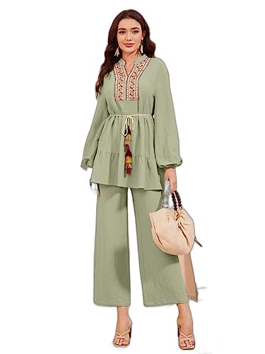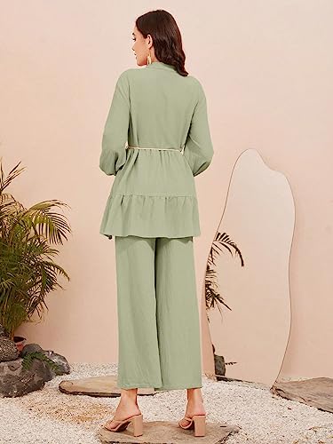 SHEIN - طقم ملابس للنساء مكون من قطعتين من مولفاري بشريط لاصق واكمام فانوس وسروال بحزام بيبلوم