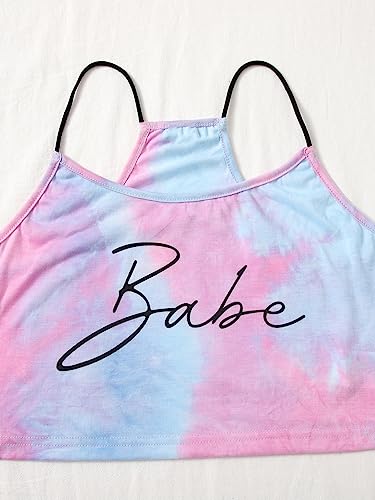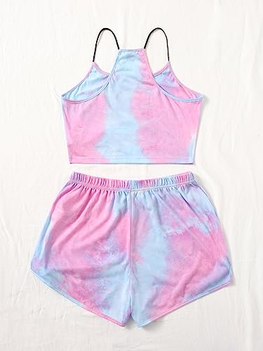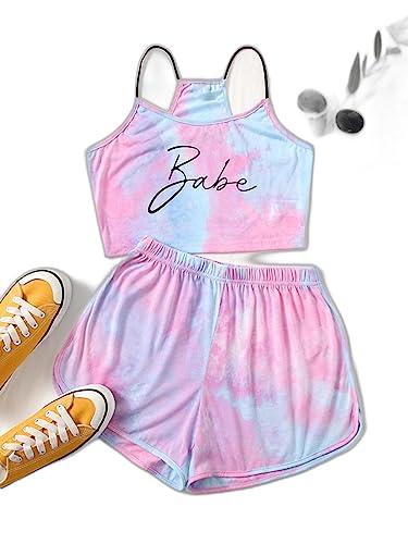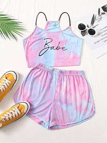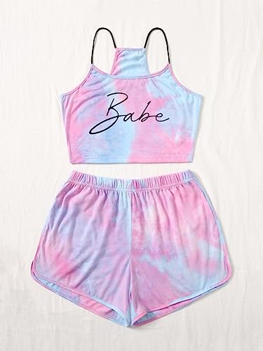 SHEIN - طقم ملابس للنساء مكون من قطعتين من في سي ايه واي مكون من بلوزة وشورت قصير بحروف مصبوغة بحمالات رفيعة