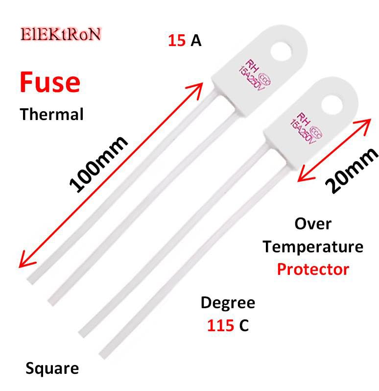 - 2 قطعة 15 امبير 2 قطعة فيوز حراري - محرك مروحة مربع أبيض LED وصلات حرارية 250 فولت ار اتش تي اف 115 درجة مئوية 15 امبير ار اتش حماية من درجة الحرارة الزائدة