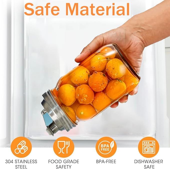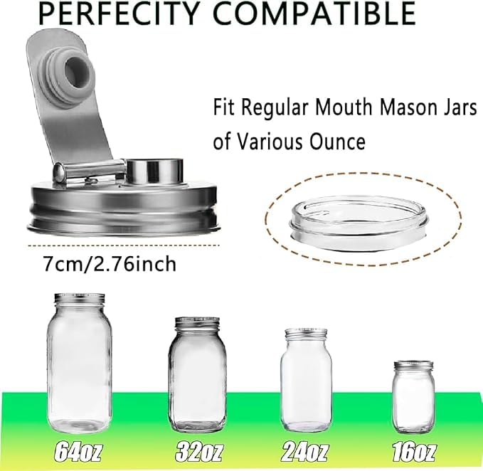 - يناسب برطمانات ماسون بفتحة عريضة 3.4 انش مع غطاء من الستانلس ستيل 304. خالية من البيسفينول ايه، ولن تصدأ ولا تحتوي على مواد لاصقة أو صمغ.