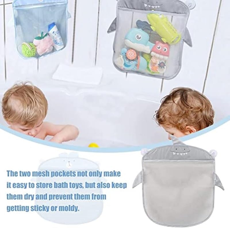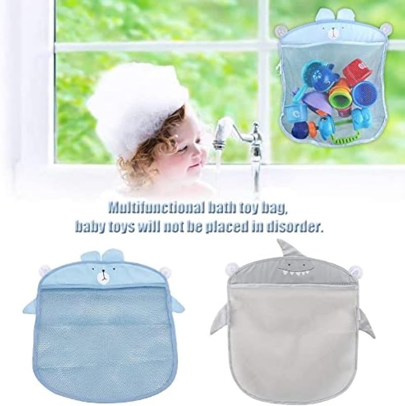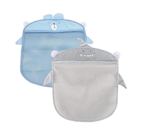 fashion mania - منظم ألعاب حمام الأطفال من قطعتين - منظم تخزين ألعاب الحمام بفتحة كبيرة (أزرق ورمادي)