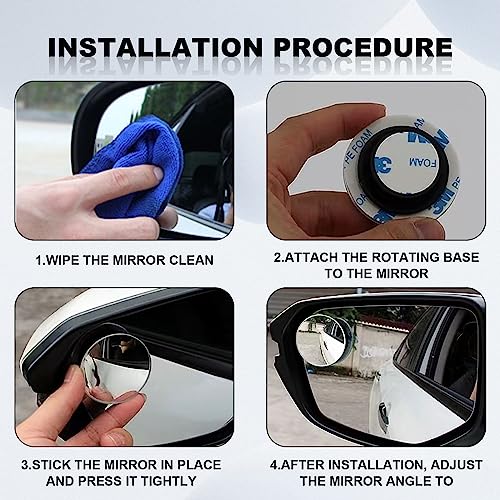 - 【سهلة التركيب】مع لاصق معزز، يمكنه تثبيتها بإحكام. يرجى تنظيف المراية الجانبية الأساسية لسيارتك، ثم لصق مراية النقطة العمياء على دعامة التثبيت وتثبيتها على مراية الرؤية الخلفية الجانبية. يستغرق الأمر بضع دقائق فقط لإكمال التركيب.