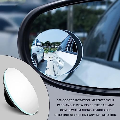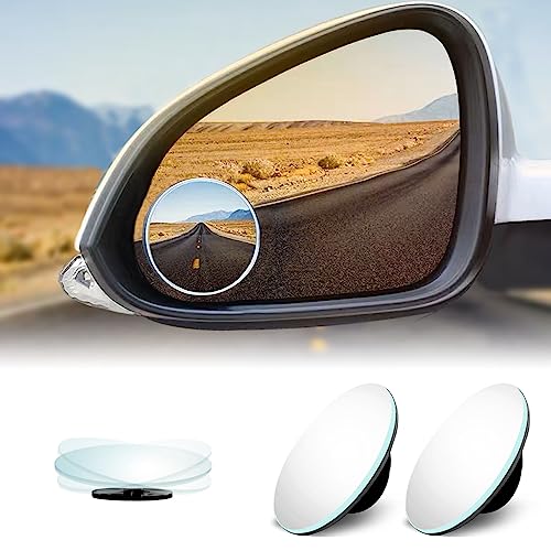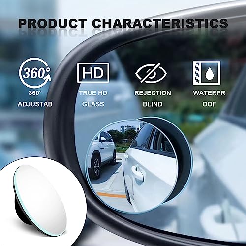 CmeRto - مراية النقطة العمياء HD للرؤية الخلفية للسيارة زجاجية محدبة ودائرية بدون إطار 5 سم ملحقات خارجية مع عصا بزاوية واسعة قابلة للتعديل للسيارات الرياضية والشاحنات، 2 قطعة