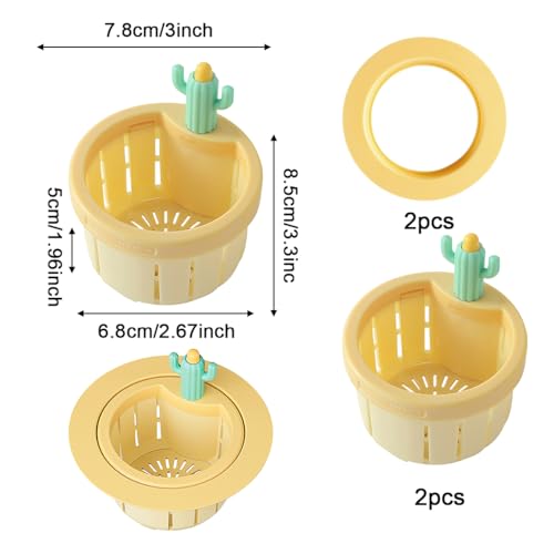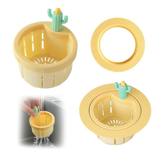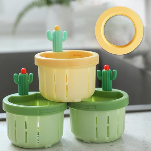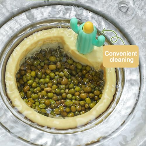 - 【تصميم خارجي مبتكر】: مصفاة الحوض بنمط الصبار غنية بالألوان ولها مظهر لطيف، مما يضيف لمسة من الدفء إلى مطبخك. يعتمد الرأس على تصميم يعمل بالضغط. بنقرة واحدة فقط من إصبعك، يمكنك بسهولة فتح الجزء السفلي وتفريغ البقايا في سلة المهملات.