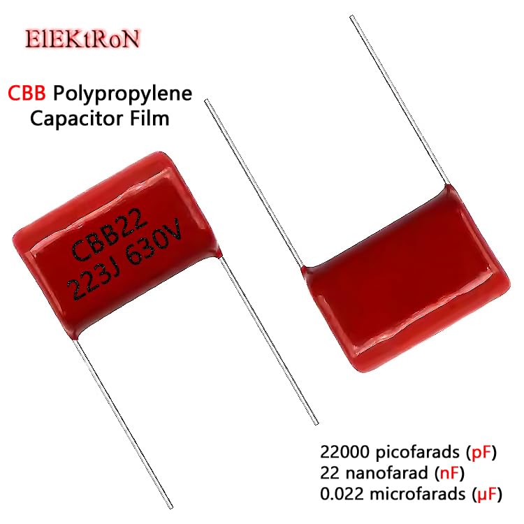 - 2 قطعة 0.022uf 10 ملم حجم 0.022uf مكثف - مكثف CBB غشاء بولي بروبلين معدني 630 فولت 223J 22000 بيكوفاراد 22 نانو فاراد 0.022 ميكروفاراد