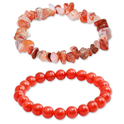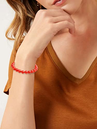 generic - سوار كريستال كارنيليان للنساء، سوار من الاحجار الكريمة الطبيعية، سوار خرز دائري احمر قابل للتمدد، سوار علاجي احجار، اخرى