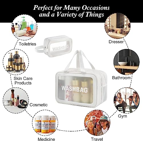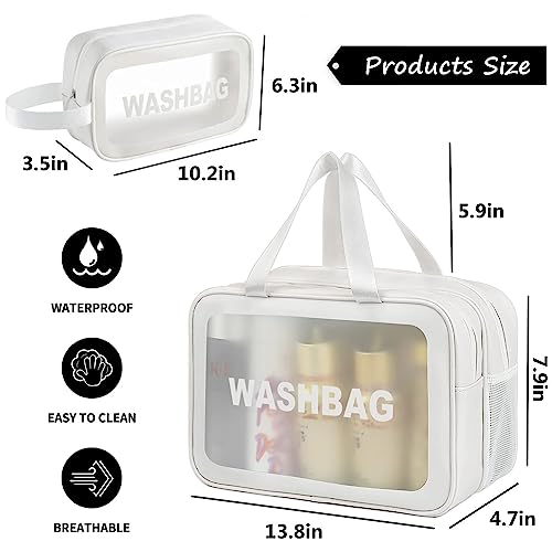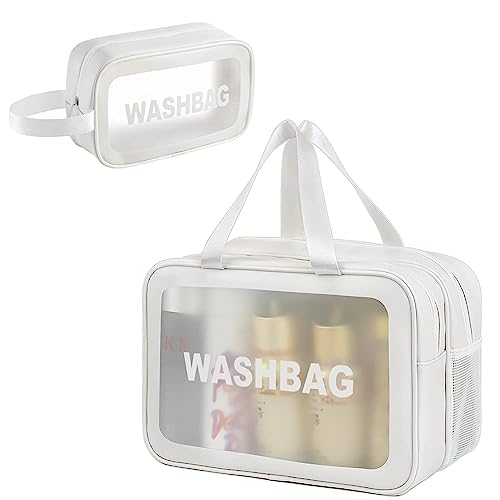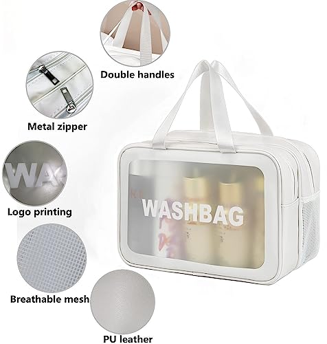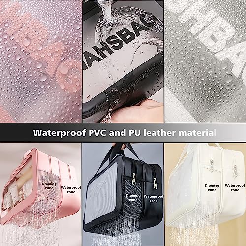 HYGEIAN - شنطة مستحضرات تجميل شفافة من طبقتين منفصلة للاستخدام الرطب والجاف مع مكياج متوسطة يد محمولة مقاومة للماء بسعة كبيرة لتنظيم شنط السفر وامتعة ابيض هايجين بلاستيك بي في سي