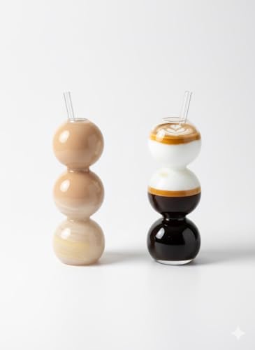 - ☕ تصميم شفاف أنيق: أكواب زجاجية شفافة مصنوعة بشكل جميل مصممة للمشروبات الساخنة والباردة. مثالية لعرض لون وملمس مشروباتك المفضلة.