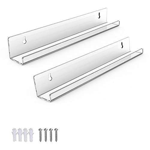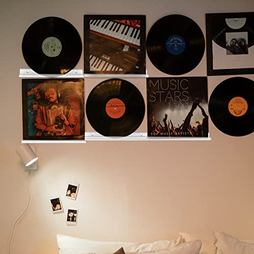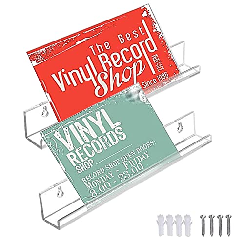 Udewo - قطعتان من رف تسجيل الفينيل الشفاف يثبت على الحائط غير مرئي للصور والالبومات والتسجيلات الاكريليك تخزين فينيل شفاف عائم مجموعة عرض