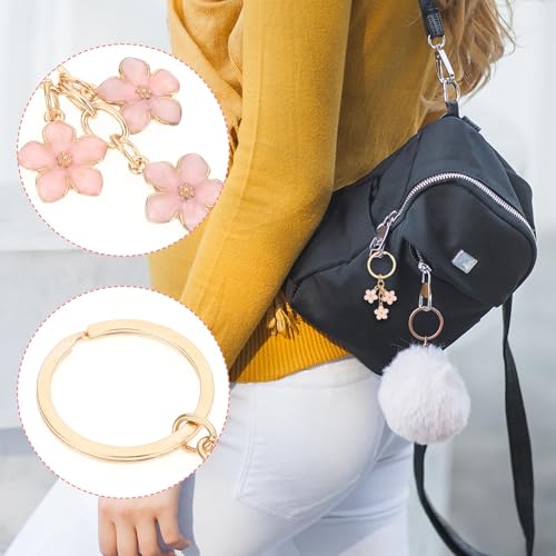 Pmeixcy - سلسلة مفاتيح لطيفة على شكل زهرة ذهبية من قطعتين، اكسسوارات سيارة لطيفة، اكسسوارات شنطة مفاتيح، هدية للنساء