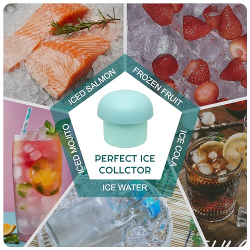 - تصميم تخزين مستقل: يبلغ حجم قوالب مكعبات الثلج المصنوعة من السيليكون 3.15 انش، ويمكنك تخزينها في أي ركن من أركان الثلاجة. يحمل دلو الثلج 2 في 1 هذا ما يصل إلى 60 مكعب ثلج بحجم 0.5 انش لتوفير وقت تبريد أطول للمشروبات المعبأة في زجاجات.