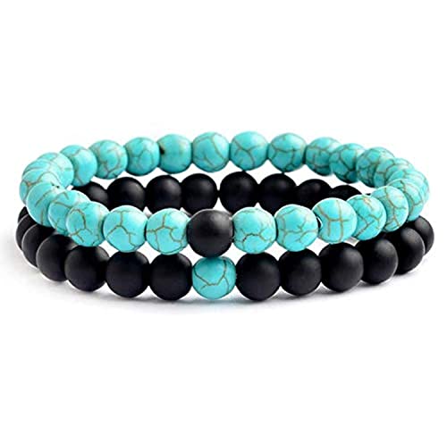 Other - قطعتان من مجوهرات دي آي واي باللونين الاسود والازرق فيروزي 8 مل، مجموعة خرز لافا ستون، سوار للرجال والنساء من الحجر الطبيعي
