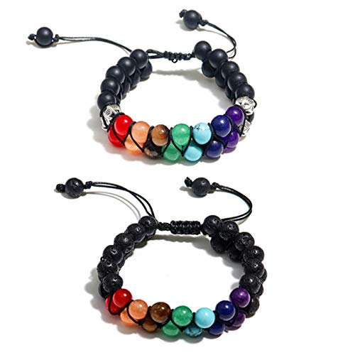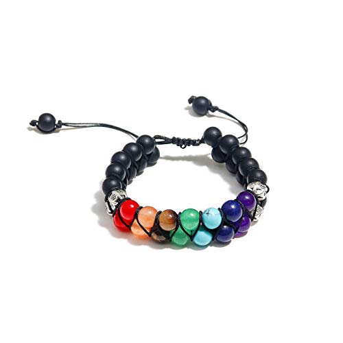 Caiyao - مجموعة اساور صلاة مزدوجة الطبقات مكونة من 7 احجار شاكرا متعددة منسوجة يدويا وقابلة للتعديل للشفاء واليوجا والتامل والاسترخاء وتخفيف القلق للنساء والرجال والبنات والاولاد هدية مجوهرات
