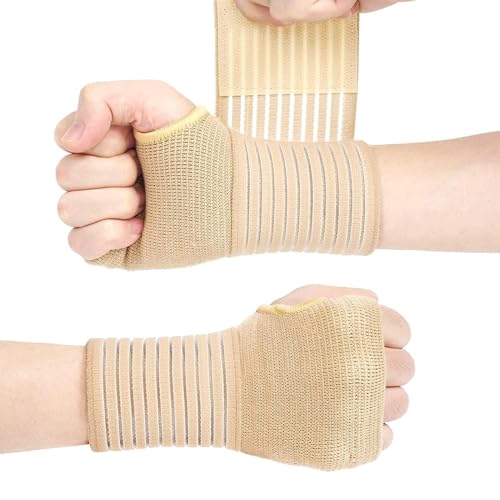 fashion mania - دعامة أستك للمعصم مع حزام الاستخدام الرياضي أو الإصابات دون قضيب معدني، يسار أو يمين 2 قطعة داخل العبوة (لون بيج)