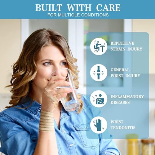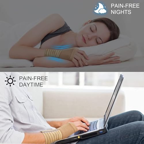 - 【مريحة ومزودة بمسامات للتهوية】تتميز مادة الدعامة بالمتانة وخفة الوزن بالإضافة إلى خصائص امتصاص الرطوبة ومقاومة للعرق لراحة تدوم طوال اليوم أثناء العمل والنوم. يحتفظ سوار المعصم المضغوط بالحرارة العلاجية لتحسين الدورة الدموية وتعزيز الشفاء.
