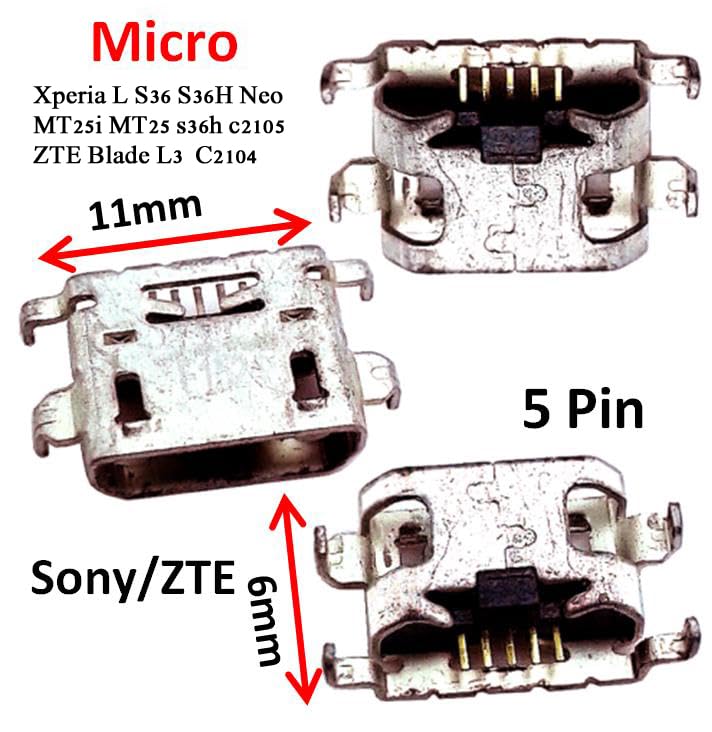 Generic - 2 قطعة منفذ انثى 5P اس ام دي تي مايكرو USB 2.0 مقبس شحن جاك نوع بي 5 دبابيس موصل صغير اصلاح L S36 S36H نيو MT25i MT25 s36h c2105 C2104 L3 محول بديل