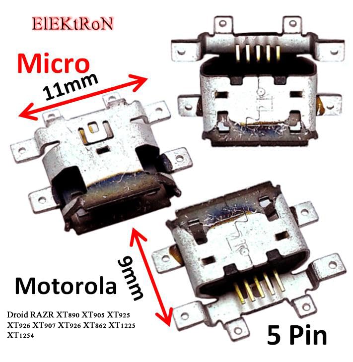 Generic - عدد قطعتين من سوكت شحن Female Port 5P SMD SMT Micro USB 2.0 Charging Socket Jack B Type 5 Pin Mini Connector Repair RAZR XT890 XT905 XT925 XT926 XT907 XT926 XT862 XT1225 XT1254 Replacement Adapter