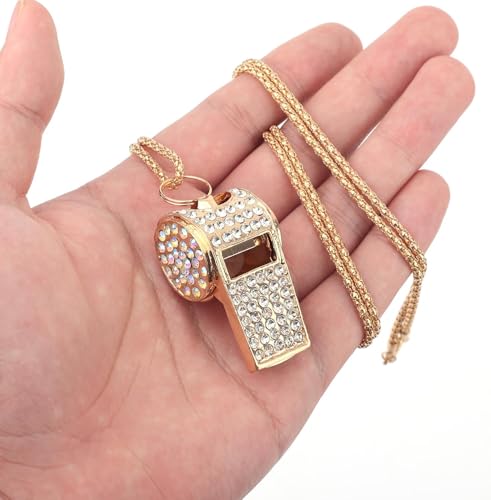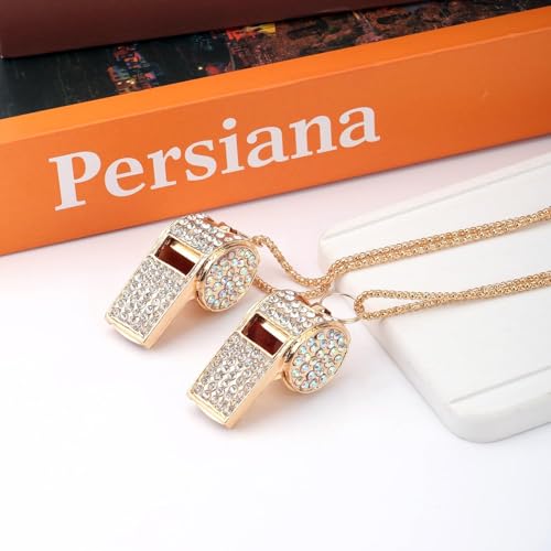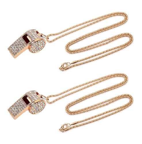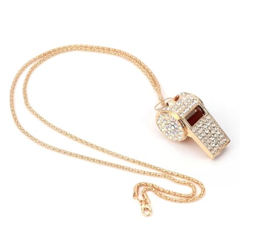 fashion mania - صفارات بسلسة لامعة معدنية مرصعة بالماس، أداة رياضية لامعة بصوت عال كهدية للحكام وكرة السلة وتدريب كرة القدم، لون ذهبي، 2 قطعة