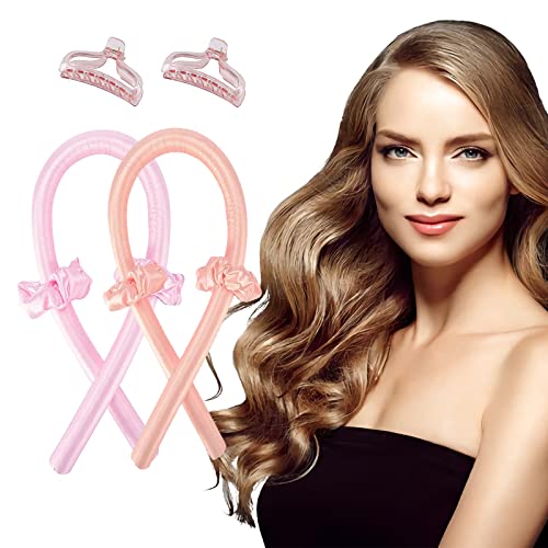 Generic - شريط رأس لتجعيد الشعر بدون حرارة مكون من قطعتين- أداة تجعيد الشعر بدون حرارة للشعر الطويل، شريط تجعيد بدون حرارة مع مشابك شعر وأربطة، يمكنك النوم وأنت تضعين بكرات التجعيد من الفوم الناعم طوال الليل