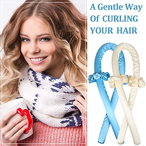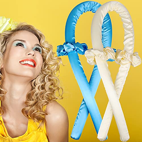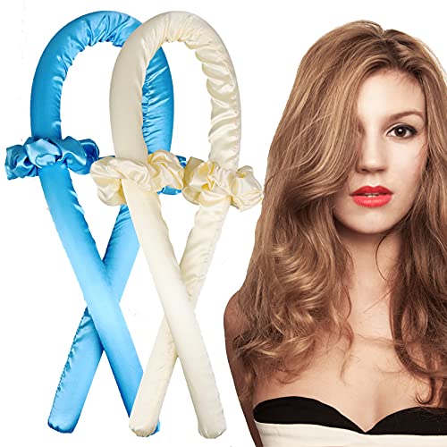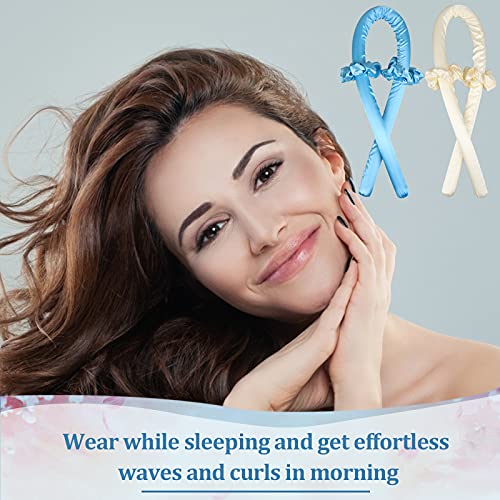 Generic - طوق رأس لتمويج الشعر بدون حرارة، بكرات شعر حريرية ناعمة للنوم، شريط تمويج مرن، أدوات تصفيف الشعر بنفسك للشعر الطويل والمتوسط - قطعتين - ازرق + اصفر