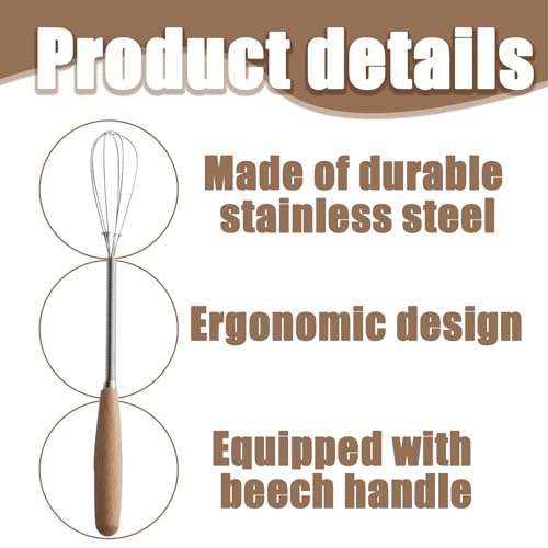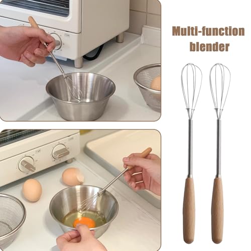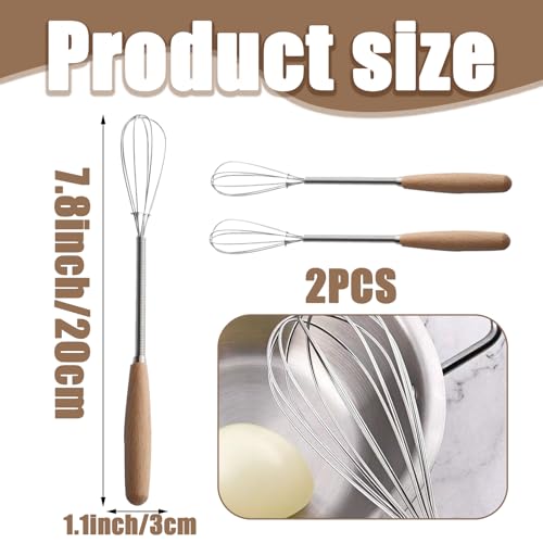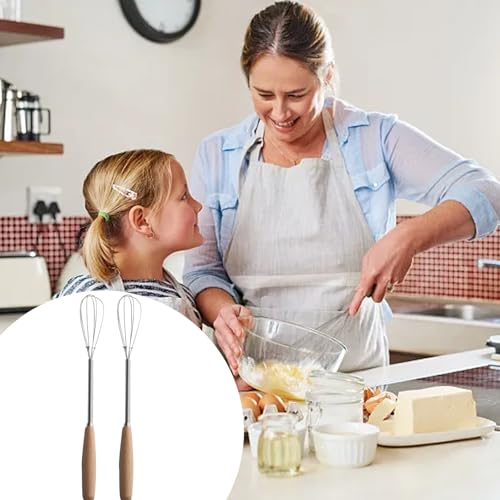 Xuigort - خفاقة سلكية صغيرة للمطبخ من قطعتين، مضرب صغير محمول من الستانلس ستيل، مضرب قوي مع يد خشبية، للطبخ والمزج والخفق والتقليب والمزج